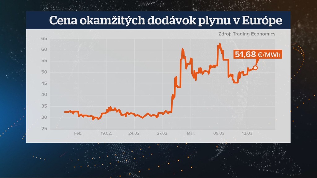 Kým naše zásoby klesali, o cene sa to povedať nedalo. Od začiatku konfliktu na Blízkom východe dokonca raketovo stúpla približne z 30 na 52 eur za MWh, teda o 73 percent.