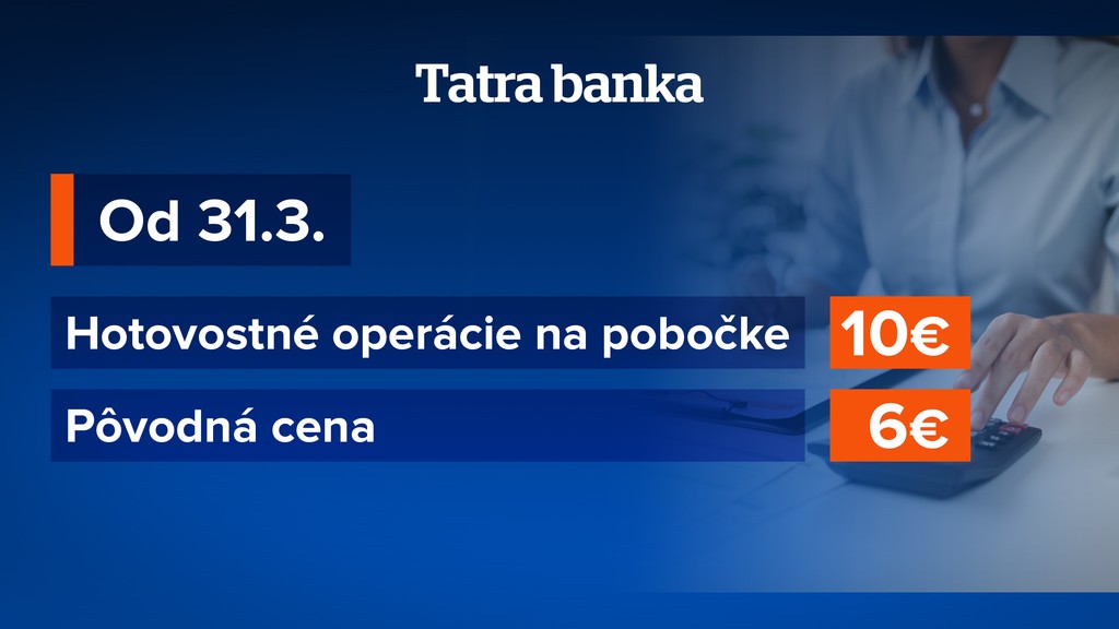 Od 31. marca čakajú zmeny aj klientov Tatra banky. Jednou z najvýraznejších zmien je zvýšenie poplatkov za hotovostné operácie v pobočkách. Výber hotovosti v banke zdražie zo 6 na 10 eur.
