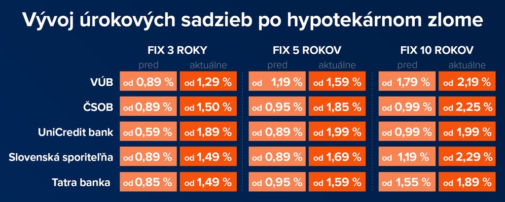 Od hypotekárneho zlomu, ktorý nastal zhruba pred dvomi mesiacmi, sadzby pri dlhodobých fixáciách narástli aj o jedno percento.