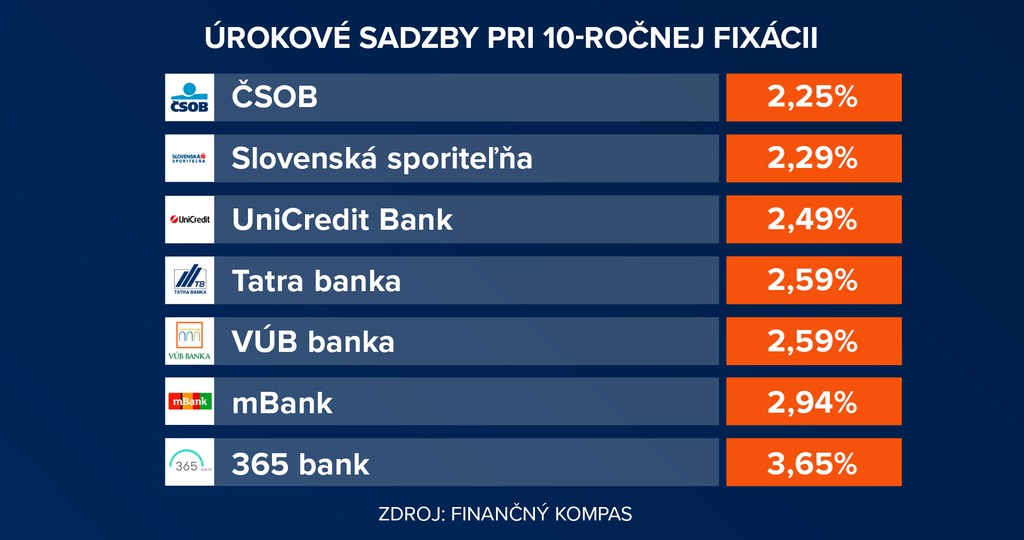 „Tatra banka svoje najlacnejšie úroky ešte nevyhnala nad dve percentá a nad hranicou dvoch percent úročí až fixácie pri päť a viac rokoch,“ podotkol analytik Finančného kompasu Matej Dobiš.