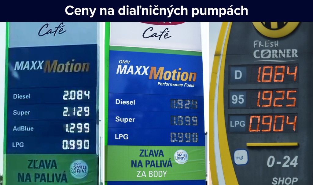 Obišli sme si aj ostatné diaľničné pumpy v rámci Bratislavy a cena na nich sa najvyššie vyšplhala na euro a deväťdesiatdeväť centov. Môže však ísť len o marketingový ťah, aby im na totemoch nesvietila dvojka.
