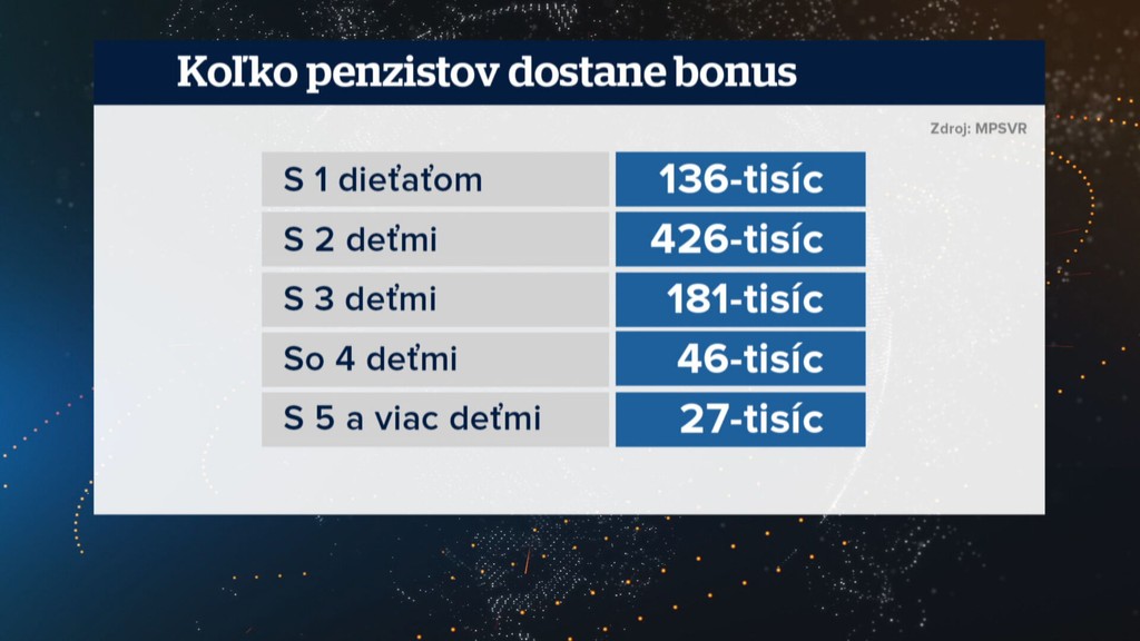Od roku 2024 už budú rodičia dostávať bonus pravidelne každý mesiac s klasickým dôchodkom. Na budúci rok to bude stáť približne štvrť miliardy eur.