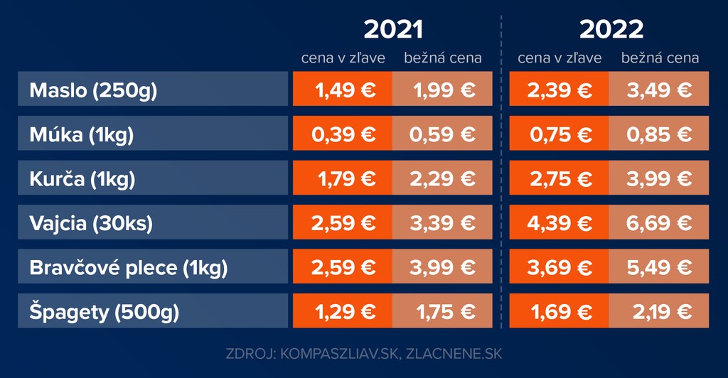 Slovensko už viac ako rok čelí masívnemu zdražovaniu. Ľudí okrem cien energií a pohonných hmôt najviac trápia stále rastúce ceny potravín. Tie sú už tak vysoko, že tovary v zľavách sú drahšie ako bežné ceny pred rokom.