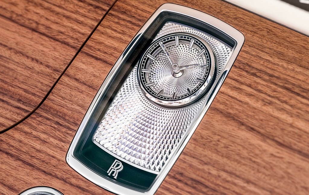 V drevenom obklade palubnej dosky sú umiestnené hodinky, ktoré boli navrhnuté a vyvinuté dizajnérmi a remeselníkmi z oddelenia Coachbuild.