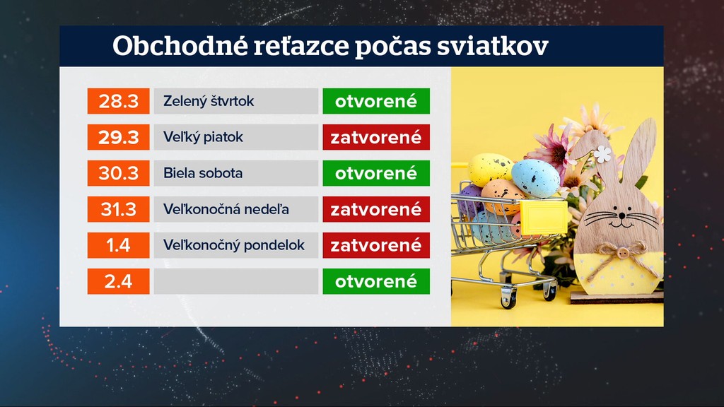 Vo štvrtok budú reťazce ako po ostatné roky otvorené. Nenakúpite však na Veľký piatok, Veľkonočnú nedeľu ani pondelok.