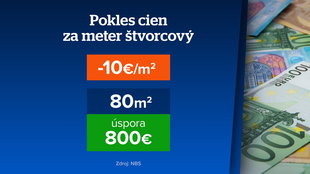 To sa v prvom momente môže zdať zanedbateľné, no ak si to prepočítame na eurá – v priemere jeden meter štvorcový zlacnel o 10 eur, čo pri kúpe napríklad 3-izbového bytu v centre Košíc s rozmerom 80 m2 môže kupujúcemu ušetriť aj 800 eur.