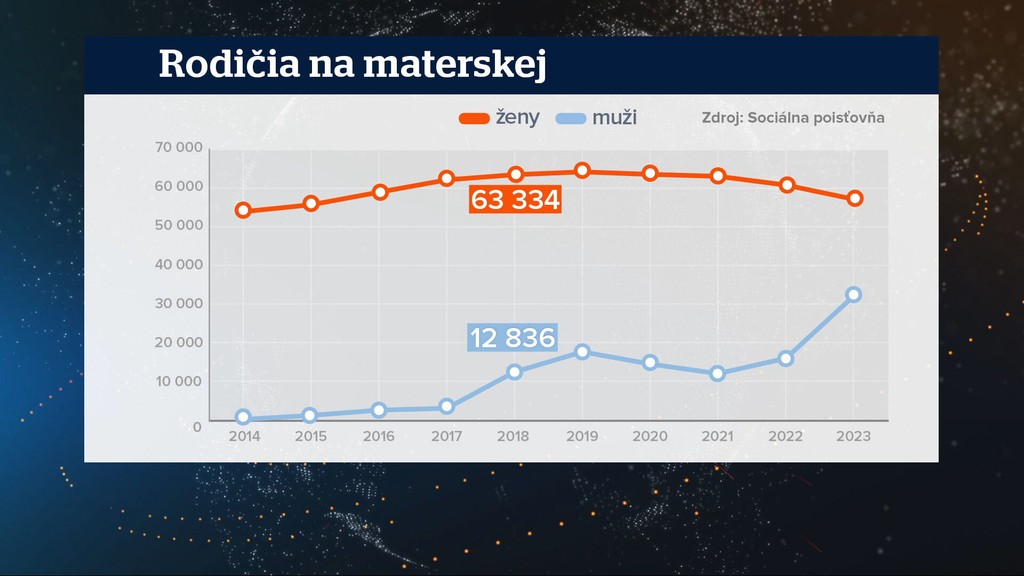 V roku 2014 to bolo len niečo vyše 700 mužov, v roku 2018 už materskú poberalo menej ako 13-tisíc mužov. V minulom roku to bolo už viac ako 32-tisíc.
