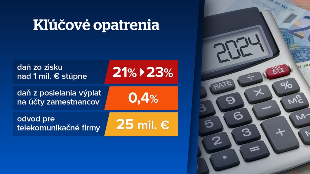Pod očakávané zdražovanie sa podpíšu najmä dane. Vláda ich firmám zvýši z 21 na 23 percent, ak zarobili aspoň milión eur. Zavedie tiež transakčnú daň z každej výplaty, ktorú firma či podnikateľ pošle zamestnancovi alebo obchodnému partnerovi.