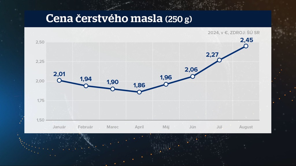 Vlani na jar sme štvrťkilové maslo v akciovej cene kúpili za 1,39 eura. Tieto časy sú však preč. Od začiatku roka stúpla jeho cena podľa údajov štatistického úradu o viac ako 20 percent.
