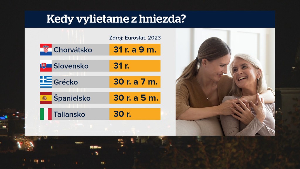 Slováci zostávajú bývať u rodičov v priemere do veku 31 rokov. Viac, ako strednú Európu, v tomto pripomíname Stredomorie.