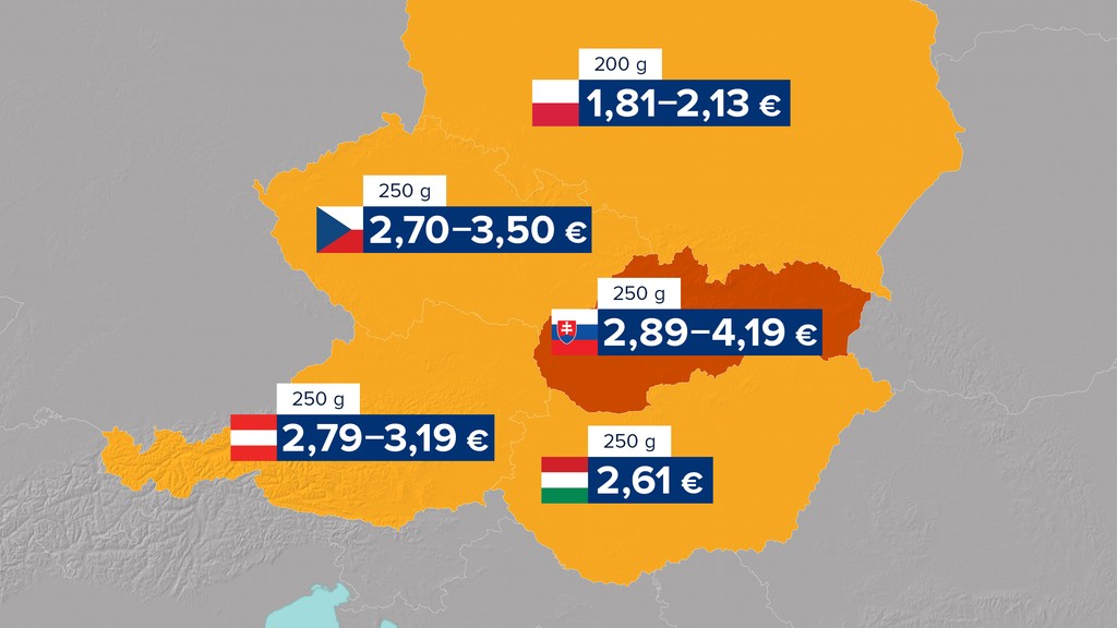 No a naše slovenské ceny sa pohybujú od necelých troch eur po viac ako štyri. Teda v prípade, že nejde o výhodnú ponuku.