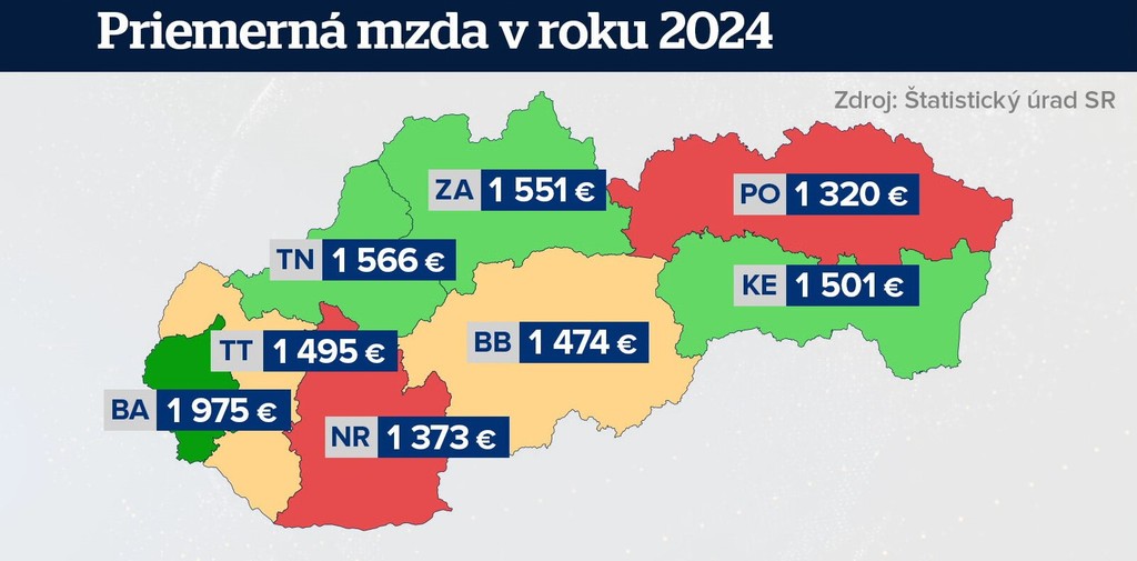 Koľko za prácu dostaneme, závisí od toho, čo robíme a kde to robíme. Priepastné regionálne rozdiely delia Slovensko na dve polovice. Kým národný priemer sa niekde zdá byť malý, pre ľudí v mnohých iných oblastiach je to isté číslo často vysnívaným platom.