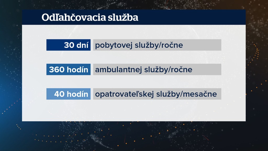 Aby mali rodičia aspoň chvíľku voľna existuje odľahčovacia služba. Mesto či obec má načas zabezpečiť starostlivosť buď v zariadení, alebo cez svoju opatrovateľskú službu. Bol to však problém, a tak ju ministerstvo práce od septembra začalo preplácať.