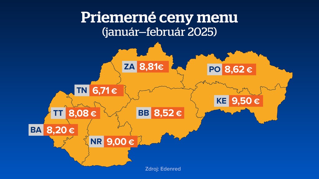 Účty za menu sa tento rok podľa ich zistení hýbu od 6,70 v trenčianskom regióne po 8, respektíve až vyše 9 eur v Košiciach alebo na západe Slovenska.