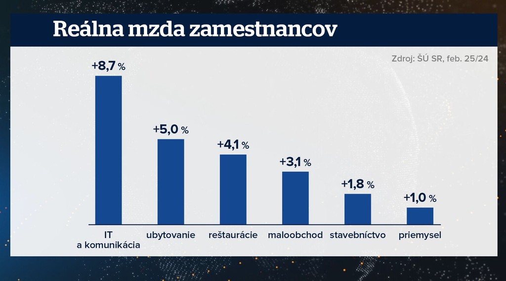 Len v šiestich odvetviach priemerná mzda rastie rýchlejšie ako životné náklady. Ešte pred mesiacom ich bolo osem.
