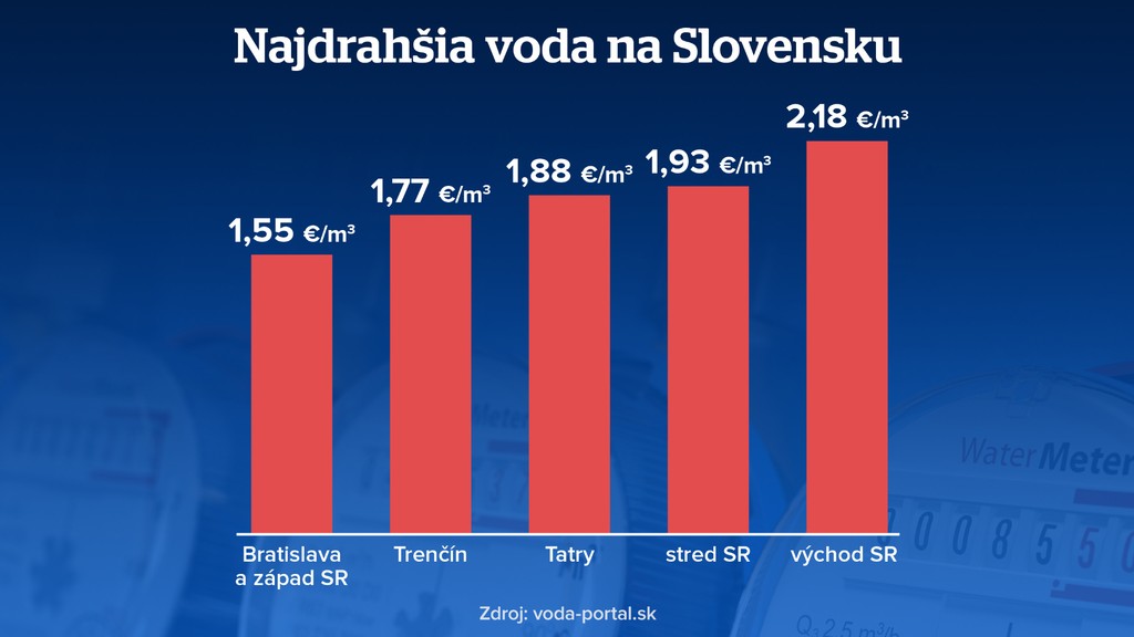 Rebríček oblastí, kde je voda najdrahšia, otvára Bratislava-západ. Nasledujú Trenčín, Tatry a stred Slovenska.
