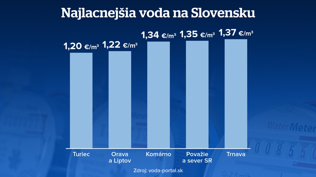 Najlacnejšia voda na Slovensku je na Turci, kubík tam stojí 1,2 eura. Otočiť kohútikom je o niečo drahšie na Orave a na Liptove. Stále je to však výrazne pod národným priemerom.