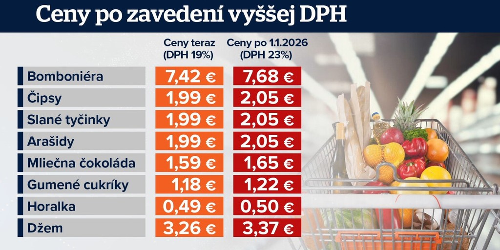 Za sladkosti a slané pochúťky si v novom roku priplatíme. Tretí konsolidačný balíček totiž ráta s nárastom DPH z 19 na 23 percent. Boli sme na nákupe, ktorý zopakujeme po 1. januári 2026.
