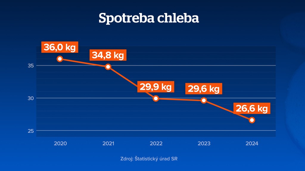 Ak by sme to rozpočítali, vlani zjedol každý Slovák vyše 26 kilogramov chleba. Za posledných päť rokov klesla spotreba viac ako o štvrtinu. Medziročne o desať percent.