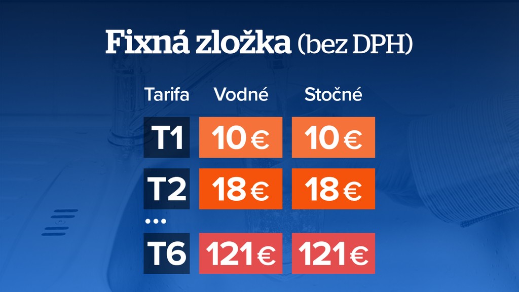 Novinkou je, že naľavo vidíte tarifnú triedu, napravo výšku fixnej zložky. Ak ste napríklad v najnižšej tarifnej triede, odoberáte vodu a ste pripojení na kanalizáciu, ročne zaplatíte fixnú sumu 20 eur.
