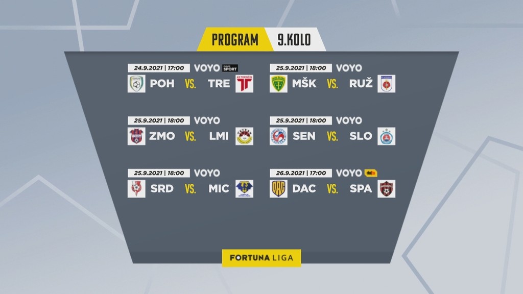 Najvyššia futbalová súťaž Fortuna liga počas víkendu pokračuje kompletným 9. kolom. Zápasy sú rozvrhnuté do troch hracích dní, pričom program kola odštartuje v piatok zápasom FK Pohronie - AS Trenčín s úvodným výkopom o 17.00 hod.