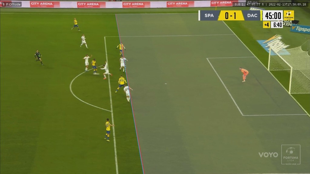 V nadstavenom čase prvého polčasu zasiahol do duelu opäť VAR. Takáč neudržal strelu Andzouanu, Hahn loptu vrátil Ciganiksovi, ten posunul znovu Andzouanovi, ktorý už na druhý pokus umiestnil loptu po zemi do siete. Po zhliadnutí videozáznamu ale gól neplatil pre ofsajd Hahna.