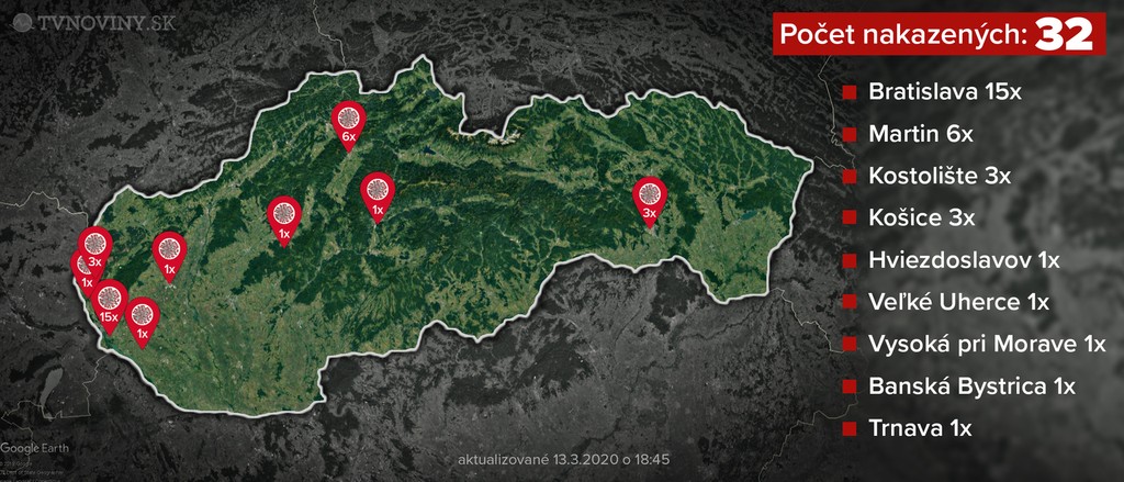 V piatok popoludní pribudli na Slovensku ďalšie dva pozitívne prípady. Za jeden deň sa tak zvýšil počet nakazených novým koronavírusom o 11 na celkových 32 prípadov. Medzi nakazenými sú aj dvaja malí chlapci.