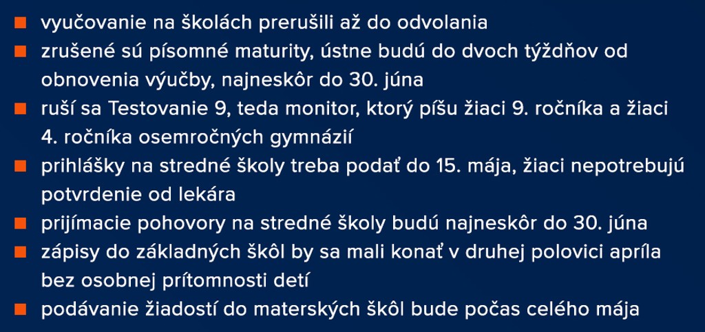 "Čo sa týka regionálneho školstva, školský rok chceme reálne ukončiť tak, ako je naplánované, teda do 30. júna," povedal minister školstva s tým, že učivo, ktoré sa nepreberie, sa bude posúvať do ďalšieho ročníka.