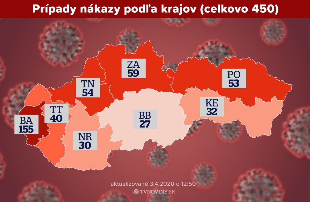 Na Slovensku vo štvrtok pribudlo ďalších 24 potvrdených prípadov nákazy novým koronavírusom. Celkovo evidujeme 450 pozitívnych prípadov.