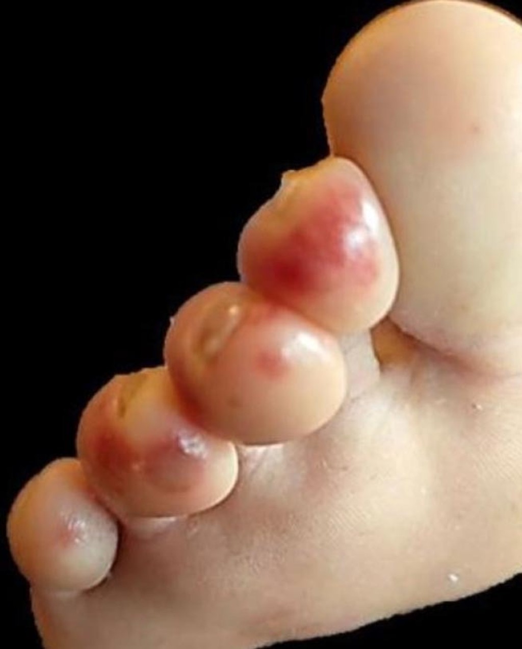 Covidové prsty sa objavujú hlavne u detí a dospievajúcich pacientov ako prvý príznak ochorenia. Ide o červené hrbole na prstoch, a to najmä na nohách. Sú bolestivé na dotyk, pripomínajú začervenanie kože v chlade a môžu svrbieť.