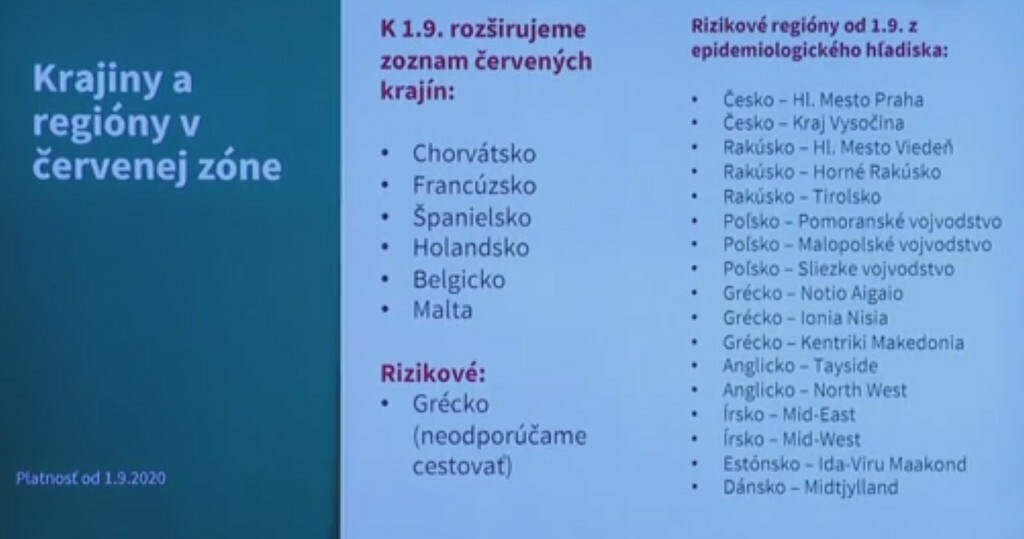 Zoznam rizikových krajín sa od utorka od 7.00 h mení. Pribúdajú doň Chorvátsko, Francúzsko, Španielsko, Holandsko, Belgicko a Malta. Osoby prichádzajúce z rizikových krajín budú musieť absolvovať domácu karanténu. Informoval o tom Marek Eliáš z komunikačného referátu ÚVZ SR.