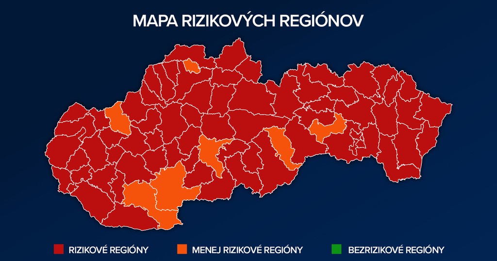 Na Slovensku po týždni vzrástol počet "červených" okresov o desať.