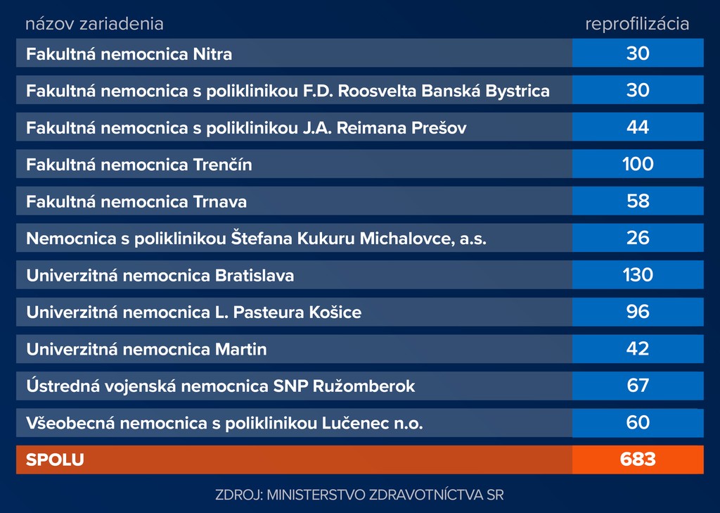 V jedenástich nemocniciach je zatiaľ vyčlenených 683 lôžok pre COVID pacientov. To znamená, že voľných je k dnešnému dňu 143 postelí. Hovorkyňa ministerstva zdravotníctva Zuzana Eliášová však dodáva, že ak sa počty pacientov budú naďalej zvyšovať, reprofilizujú ďalšie lôžka.