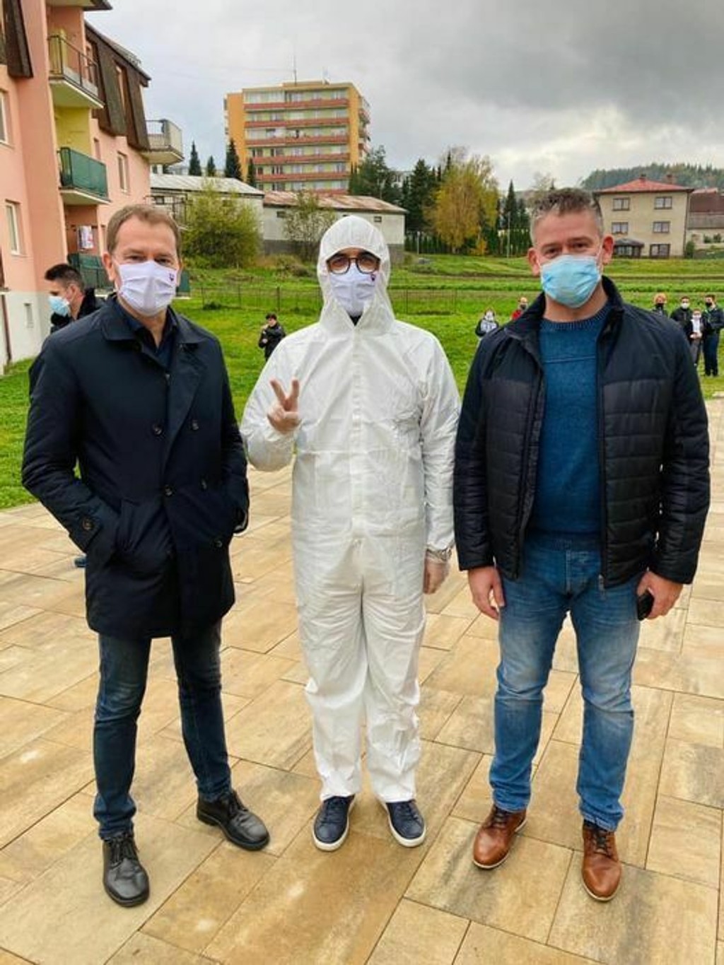 08.46 - V meste Tvrdošín pomáha pri plošnom testovaní v tíme poslankyne OĽANO a lekárky Evy Horváthovej aj premiér Igor Matovič.