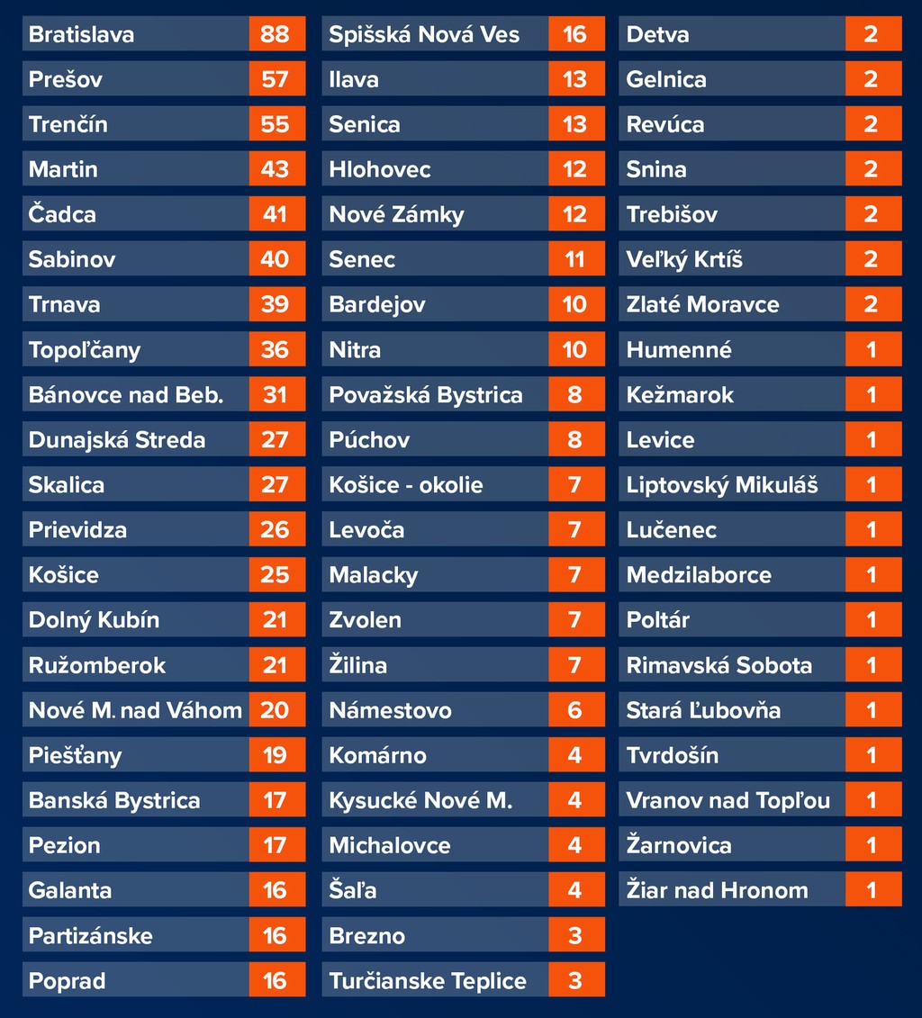 Čo sa týka nových pozitívnych prípadov, najviac ich pribudlo v Trenčianskom kraji (177), nasleduje Trnavský kraj (153), Žilinský (148), Prešovský (137), Bratislavský (123), Nitriansky (69), Košický (56) a Banskobystrický (38). Je medzi nimi 441 žien a 460 mužov, sú vo veku od niekoľkých mesiacov do 92 rokov.