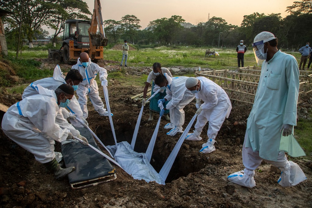 Preplnené krematória sú pre vysoký počet obetí nútené spopolňovať telá na pohrebných hraniciach. Tých je toľko, že ľuďom dochádza palivo a úrady v metropole Naí Dillí evidujú žiadosti o výrub stromov v miestnych parkoch. Nemocnice sú beznádejne plné a v niektorých prípadoch na jednom lôžku ležia dvaja až traja pacienti.