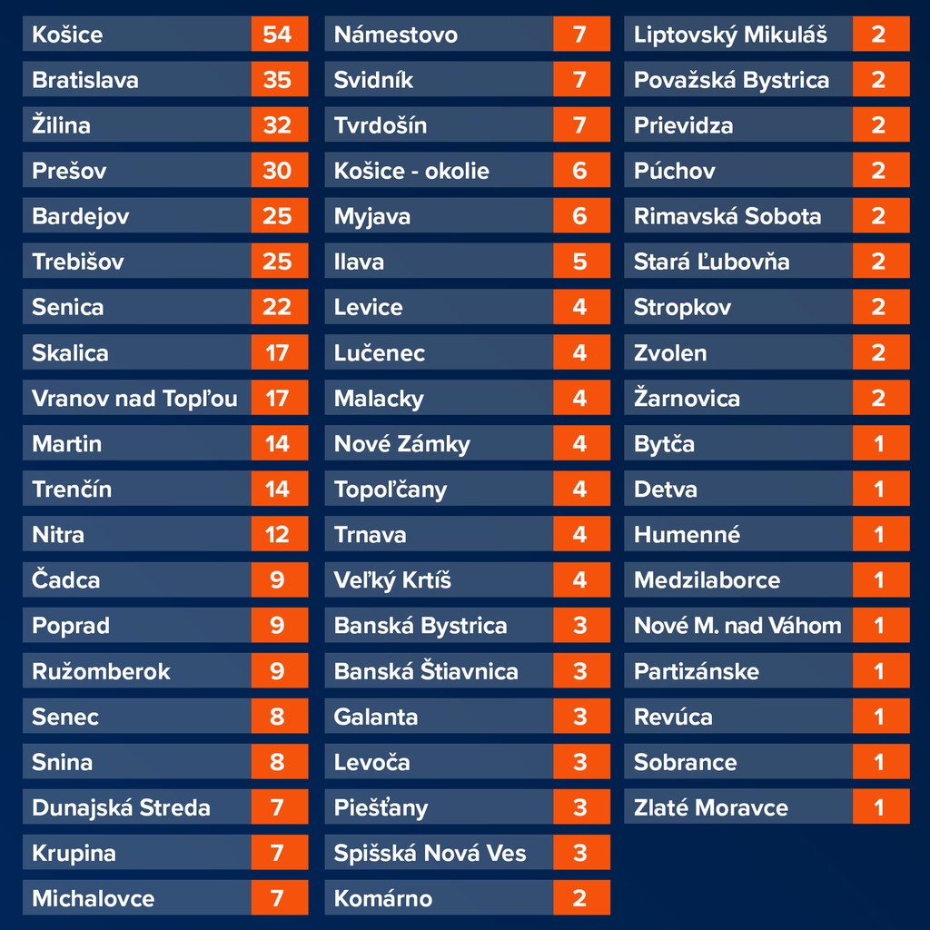 Najviac prípadov hlásia tentoraz Bratislava a Košice, desiatky infikovancýh aj okresy Skalica a Senica.