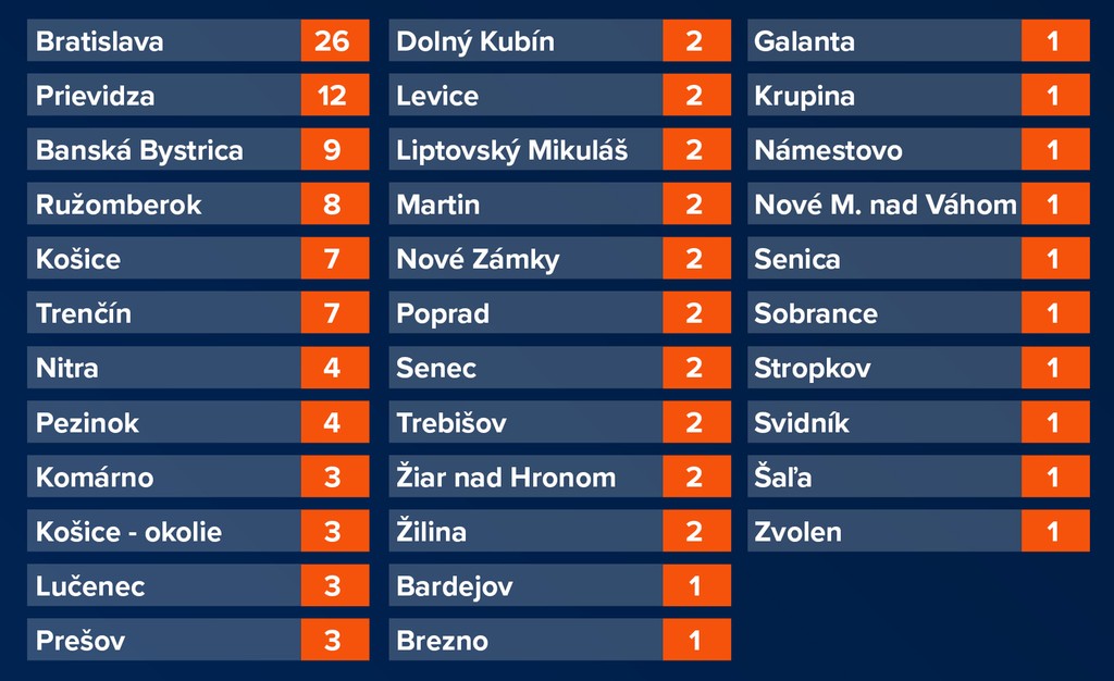 Pozitívni v jednotlivých okresoch: