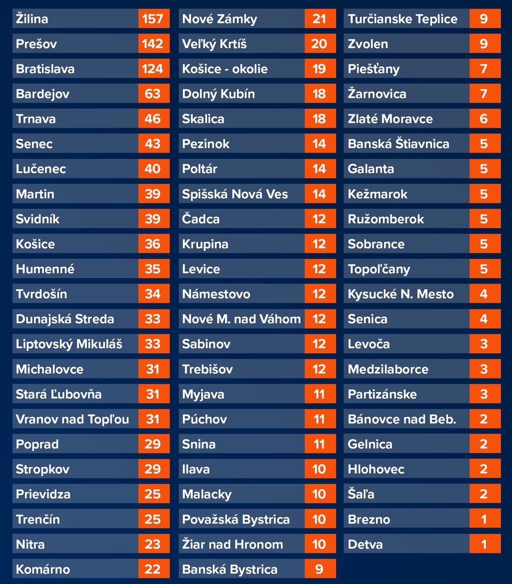 Najviac pozitívne testovaných PCR testami bolo v Prešovskom kraji (433), nasleduje Žilinský (323), Bratislavský (191), Banskobystrický (128), Košický (119), Trnavský (115) a Trenčiansky (109) a Nitriansky (91).