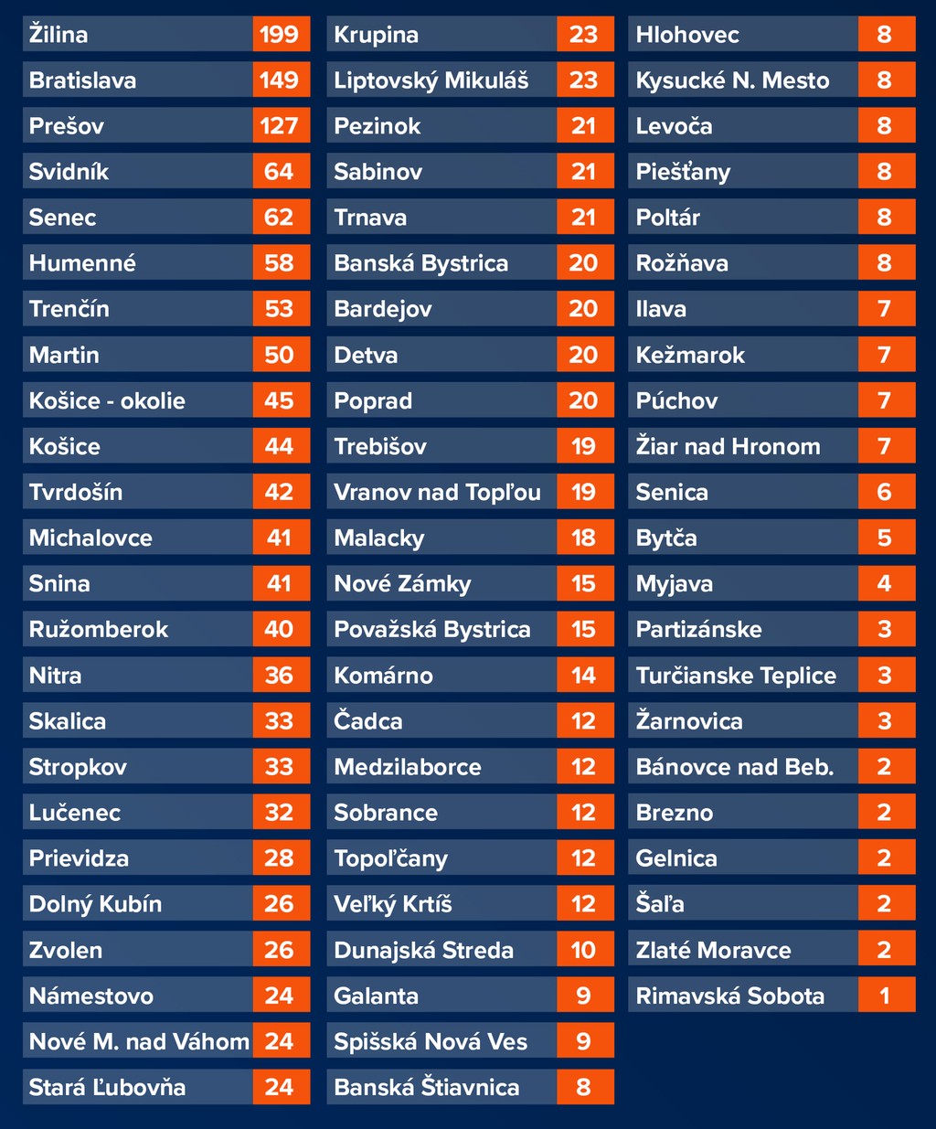 Najviac pozitívne testovaných bolo v Prešovskom kraji (454), naopak najmenej v Nitrianskom (81) kraji. Pozitívny antigénový test malo 903 ľudí, takmer 75 percent nebolo zaočkovaných. Nasledujú kraje - Žilinský (432), Bratislavský (250), Košický (180), Banskobystrický (162), Trenčiansky (143) a Trnavský (95).