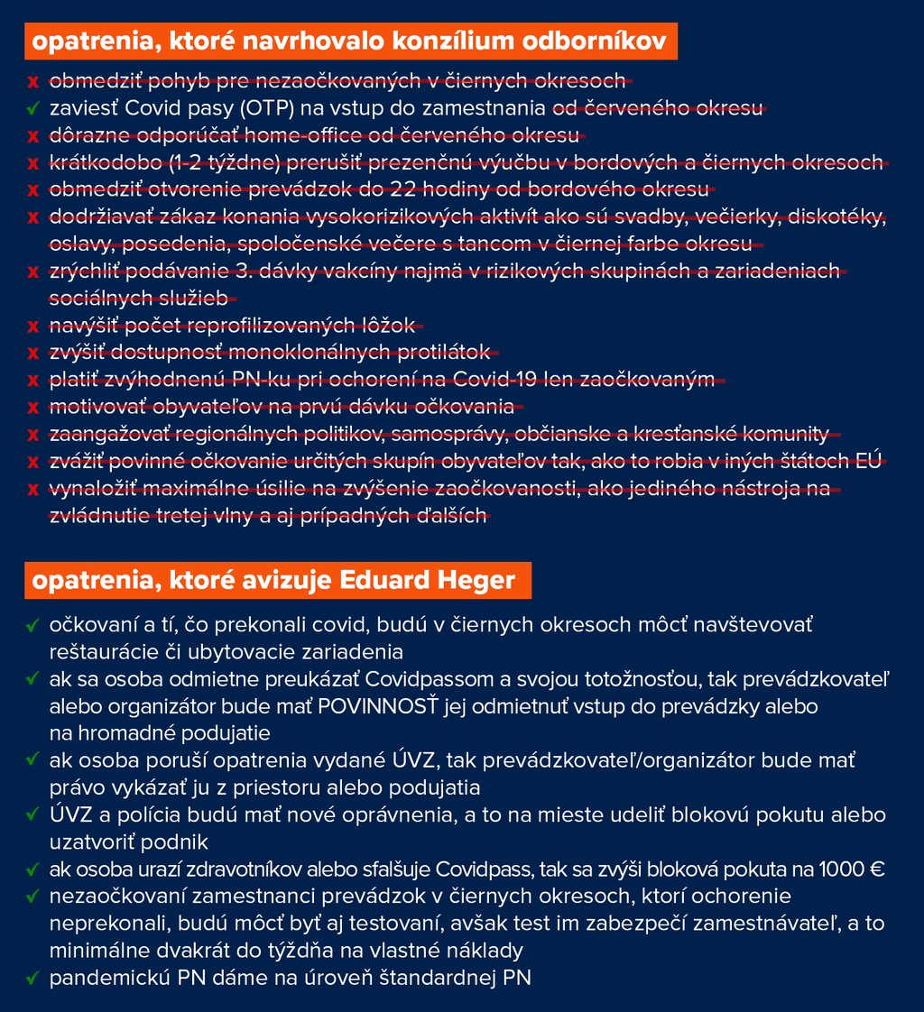 Politici na rozdiel od odborníkov napríklad nechcú obmedziť pohyb neočkovaných v čiernych okresoch, taktiež nezvažujú obmedziť prerušované vyučovanie v najkritickejších regiónoch a ani platiť zvýhodnenú PN-ku pri ochorení COVID-19 zaočkovaným.