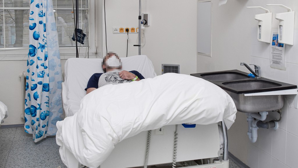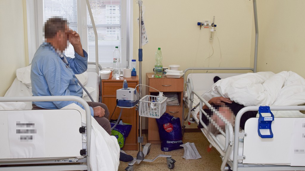 Prvé minúty šoku a úzkosti máme za sebou. Všímame si, že oddelenie je rozdelené do viacerých miestností. Na lôžkach vidíme aj mladých ľudí. Väčšina pacientov spí. Jednému staršiemu pánovi práve priniesla sestrička obed. Nechceme ich rušiť. Po oddelení stále chodí pracovník s chlórom, ktorý strieka do vzduchu, aby ho dezinfikoval.