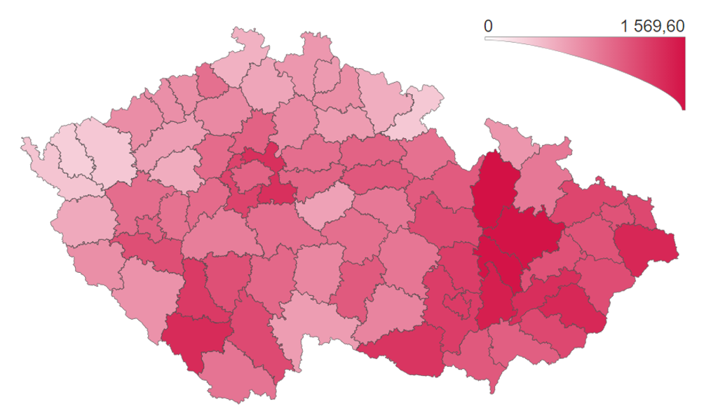 V Prostějove pripadá na 100-tisíc obyvateľov 16 944 nakazených. V okrese Šumperk 1 607, v Olomouci 1 619 a vo Vyškove 1478.