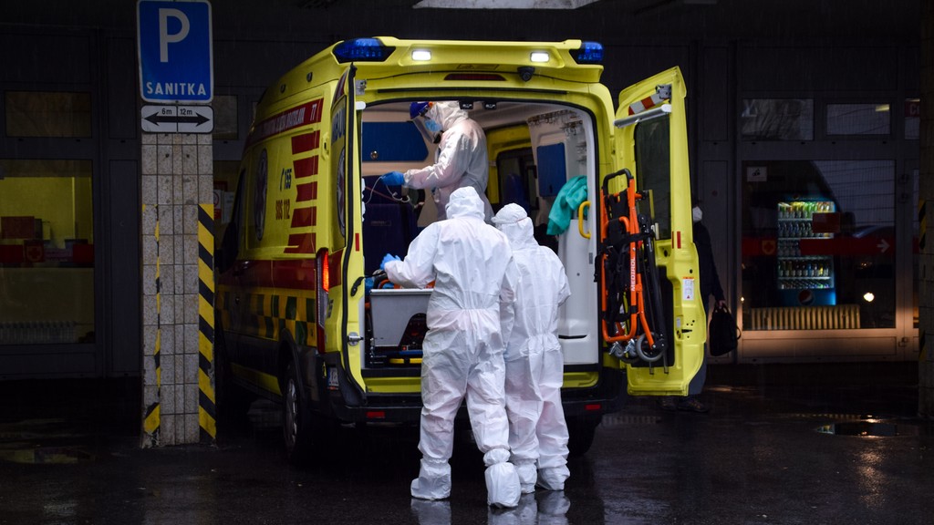 Na centrálny príjem v Ružinove prichádza sanitka. Vychádzajú z nej dvaja zdravotníci v overale a štíte. Vytiahnu ležadlo, na ktorom sedí starší pán. Má nasadenú kyslíkovú masku a v rukách zavedené kanyly. Nesúc si ruksak ho zdravotníci odvážajú do nemocnice. Pre lekárov z rýchlej zdravotnej služby je toto už rutinná záležitosť. Posledné dni cítia zvýšený nápor.