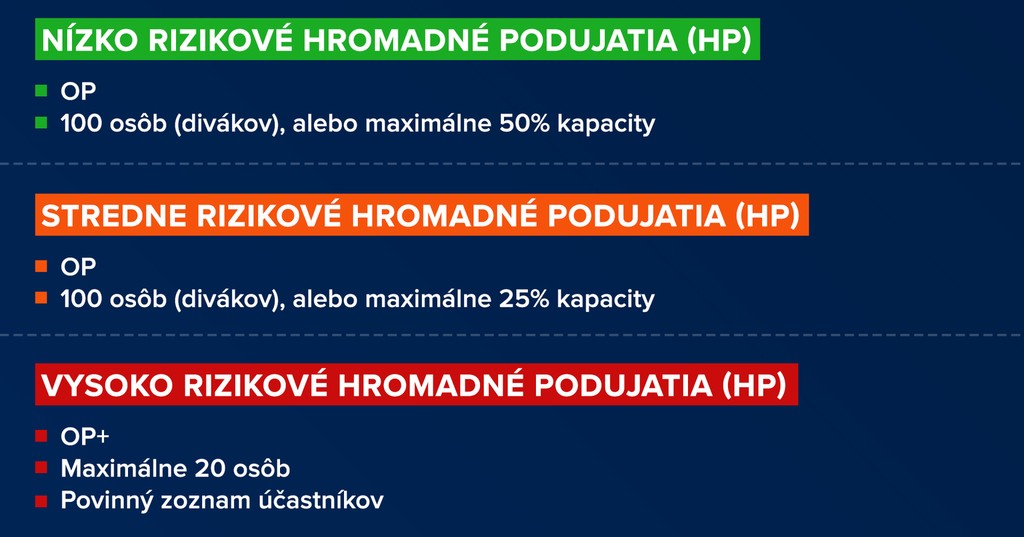 Hromadné podujatia sa po novom delia do troch skupín podľa rizikovosti. V závislosti od nej sú následne určené maximálne limity účastníkov.
