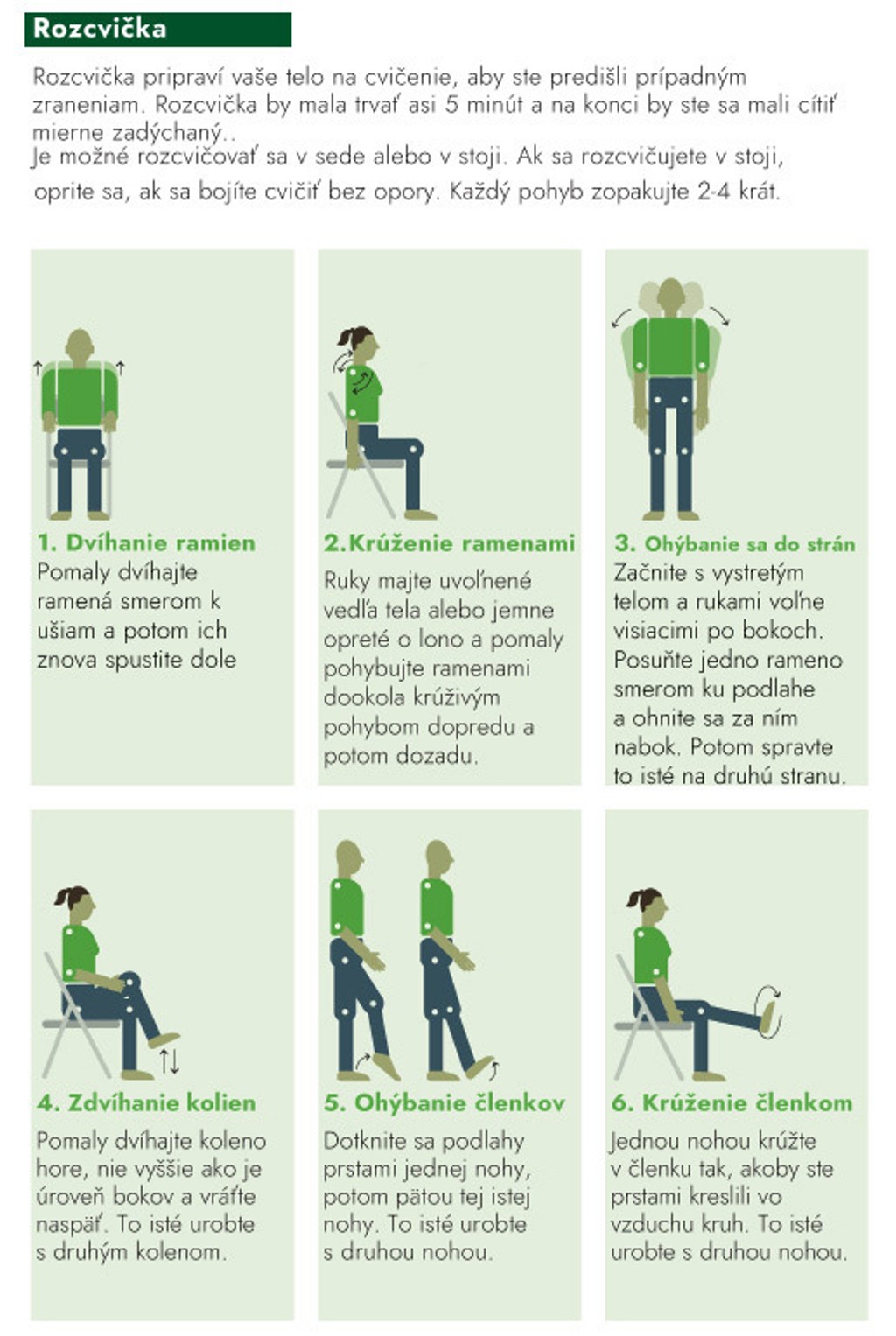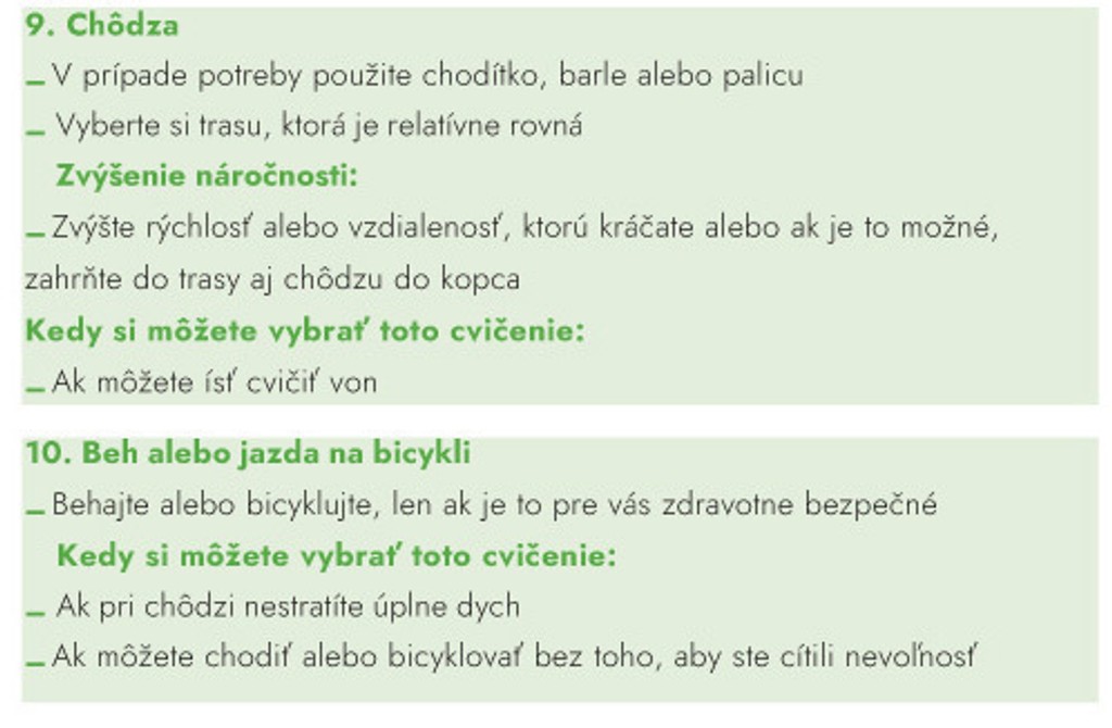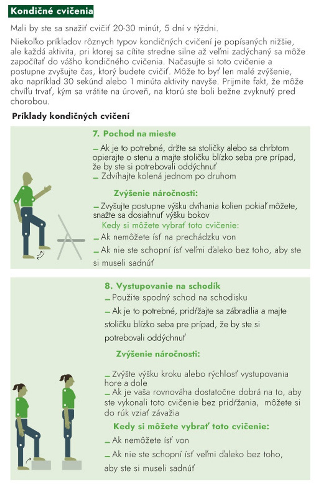 Lekár alebo zdravotnícky pracovník môže v príručke vyznačiť cvičenia, ktoré sú pre vás vhodné. Ako informoval rezort zdravotníctva, cvičenia a rady z nej by však nemali nahrádzať osobný cvičebný program alebo ďalšie rady, ktoré poskytli zdravotnícki pracovníci pri odchode zo zdravotníckeho zariadenia. Dychové a posilňovacie cviky prospejú aj ľuďom, ktorí ochorenie neprekonali.
