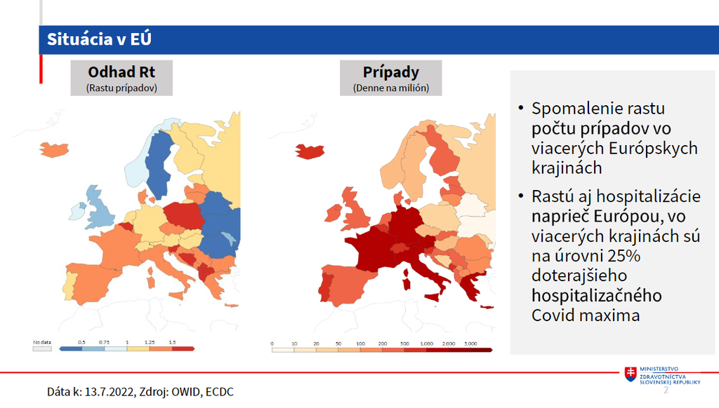 Situácia nie je prívetivá ani v zahraniční. Ministerstvo informuje o spomalení rastu počtu nových prípadov vo viacerých európskych krajinách, no aj v nich sa opäť plnia nemocničné lôžka. Niektoré hlásia 25 percent z doterajšieho maxima hospitalizácií v súvislosti s covidom.