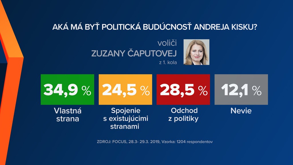 Za jeho odchod z politiky by bolo viac ako 49 percent opýtaných. Vlastnú stranu si vie predstaviť 19,4 percent z nich. Za spojenia sa s existujúcimi stranami by bolo 19 percent voličov. Rozhodnúť sa nevedelo viac ako 13 percent opýtaných.