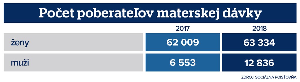 Oproti predchádzajúcemu roku toto číslo narástlo takmer dvojnásobne. Na prvý pohľad by sa mohlo zdať, že otcov, akým je Peter pribúda a generácia mladých mužov sa chce rovným dielom podielať na výchove detí a starostlivosti o domácnosť. Faktom ale je, že veľa rodičov sa rozhoduje pragmaticky. Materská dávka vyplácaná mužom je vyššia, keďže oproti ženám zarábajú viac.