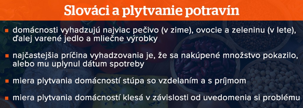 Podrobnejšie správanie domácností odhalil aj celoslovenský prieskum, ktorý pre ministerstvo pôdohospodárstva vypracovala agentúra AKO v máji minulého roka. Podľa neho sa 23 percent Slovákov priznáva, že vyhadzuje zvyšky jedla.